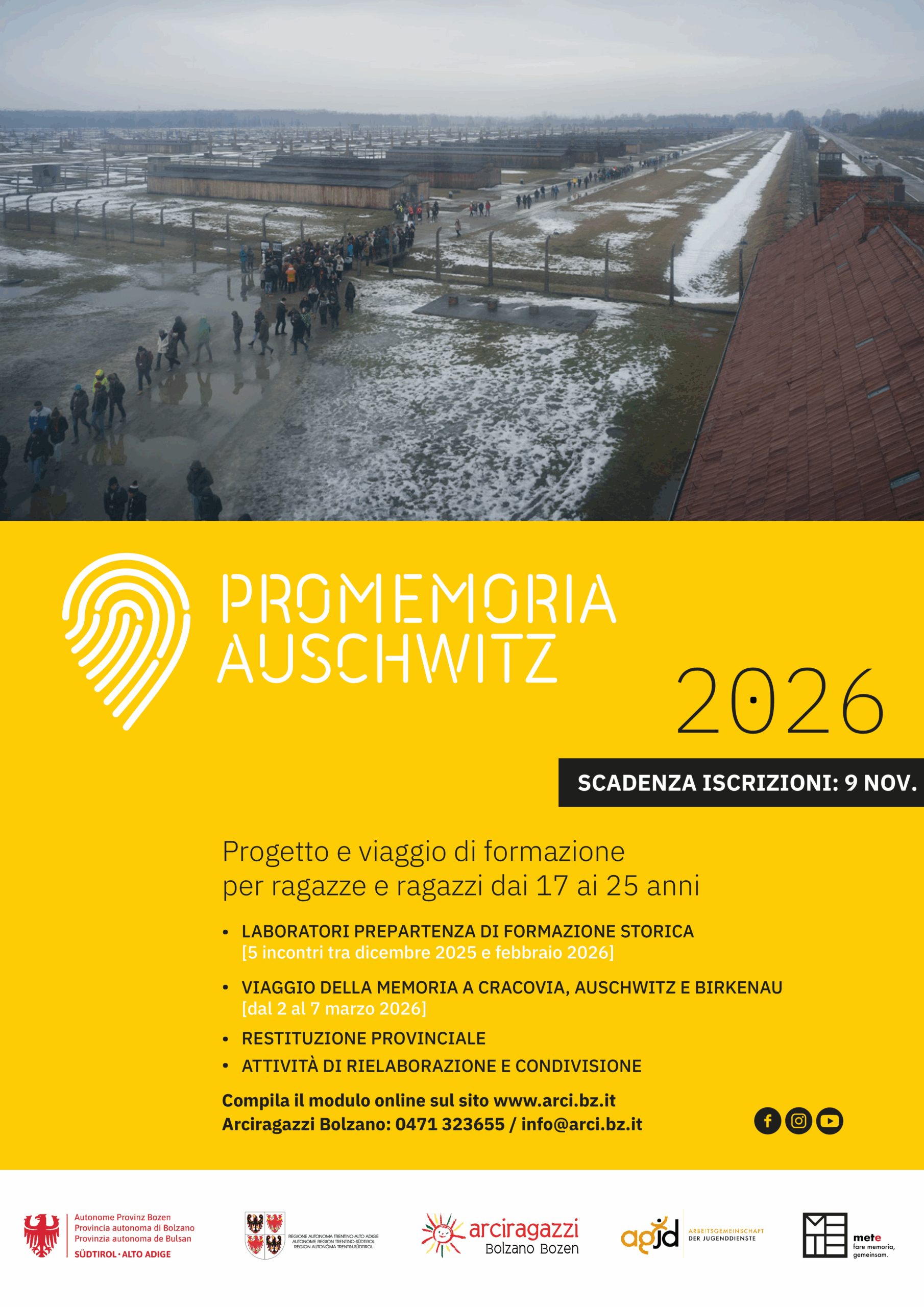 Anni di Piombo 2025 – Aperte le iscrizioni! Ana Andros2025-10-29T08:50:22+01:00Tag: attivita arci bolzano, cittadinanza, iniziative bolzano, memoria, Ultima fermata|