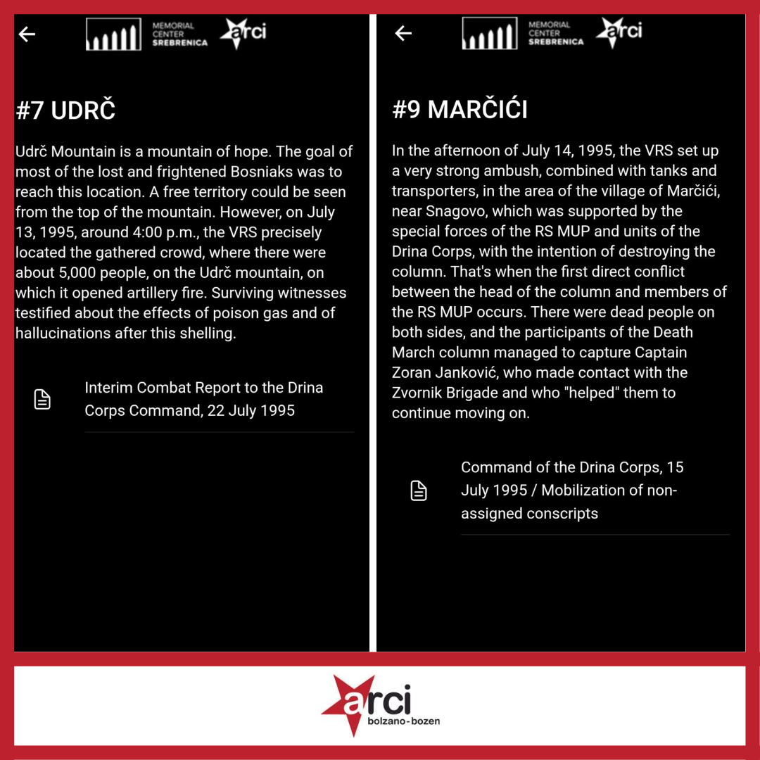 L’8 luglio, alla partenza della Marš Mira 2023, abbiamo avuto il piacere di presentare l’upgrade dell’app Srebrenica 2.0 che è stata implementata con un nuovo percorso di memoria digitale dedicato alla Marcia della morte del luglio 1995, il contesto in cui venne realizzata grossa parte del genocidio di Srebrenica.