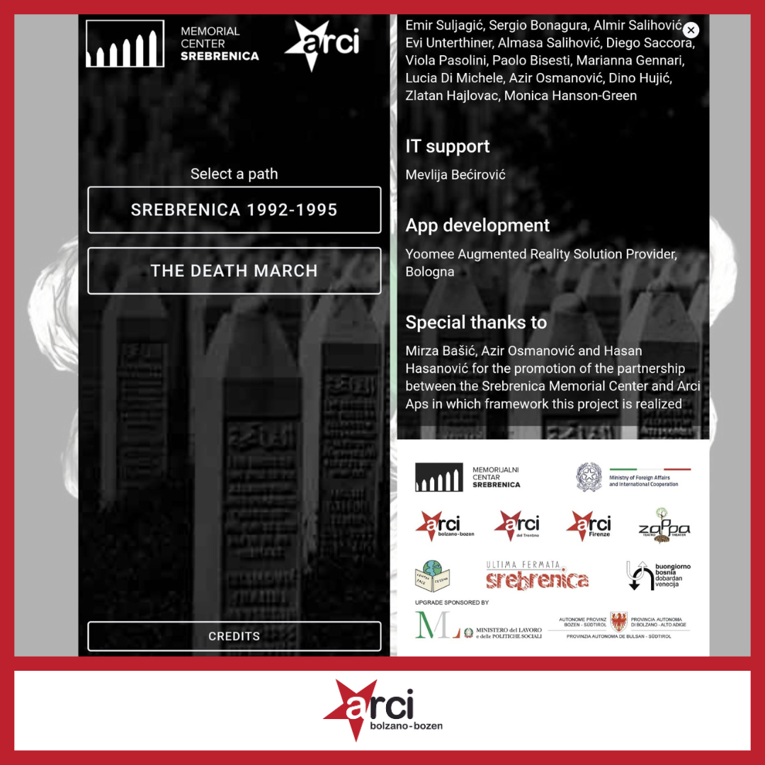Il progetto è stato sviluppato da Yoomee in collaborazione con Srebrenica Memorial Center, Arci del Trentino, Arci Firenze, Teatro Zappa Theater, Associazione Buongiorno Bosnia, Dobardan Venecija e Centro Pace Cesena, con il sostegno del Ministero degli Affari Esteri e della Cooperazione Internazionale , Ministero del Lavoro e delle Politiche Sociali e Provincia Autonoma di Bolzano